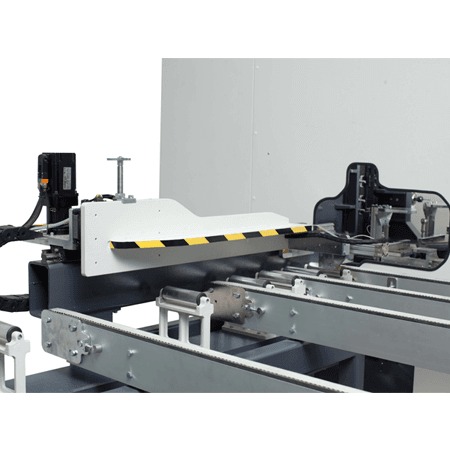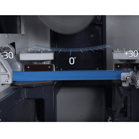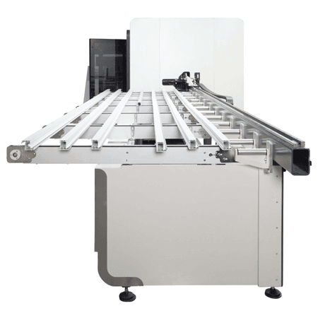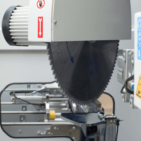 A compact high speed cutting centre for aluminium and pvc profiles, with automatic cross loader containing standard 7 compartments (more on request), rotating cutting head for precision mitre cuts using powerful servo motor to obtain variable angles. Cut piece unloading device to remove component from the sawing zone to the standard static receiving table for cut pieces. There are options for motorised unloading tables similar to the standard loading solution. Ability to reprocess waste pieces longer than 800 mm for new production, allowing waste free cutting. This centre is ideal for window and door production and industrial high volume applications.