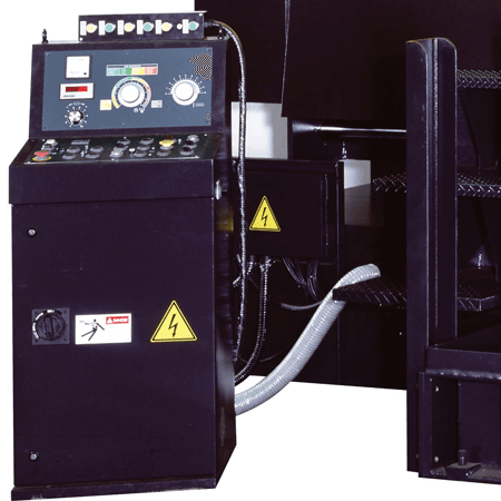 Semi Automatic bandsaw ideally suited for production cutting of large solid materials including heavy tubes and sections. PLC controlled electric & hydraulic functions with additional portable control box.