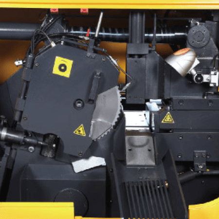 Ultra high speed billet sawing system with inclined linear cutting action using circular blades tipped with either TCT or Cermet dependant on material to be cut. These machines are unbeatable for performance with a cut finish that is sometimes good enough to eliminate a second process. The P series come standard with automatic loading system for round bar with other types of loading and unloading solutions available also.