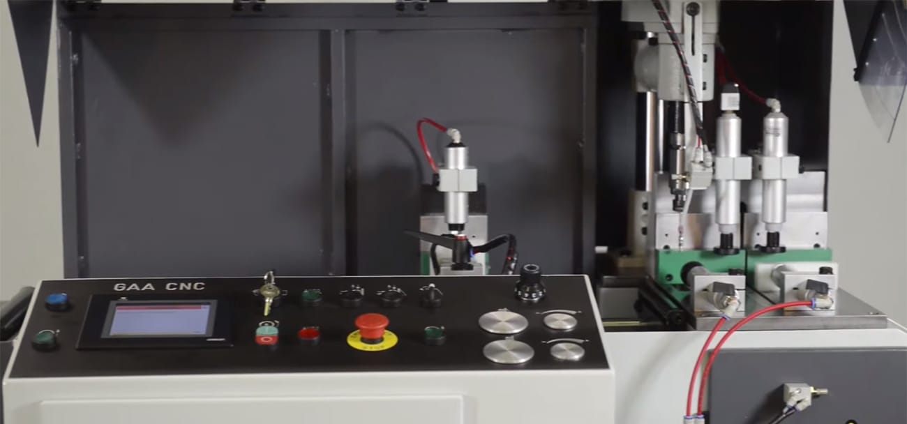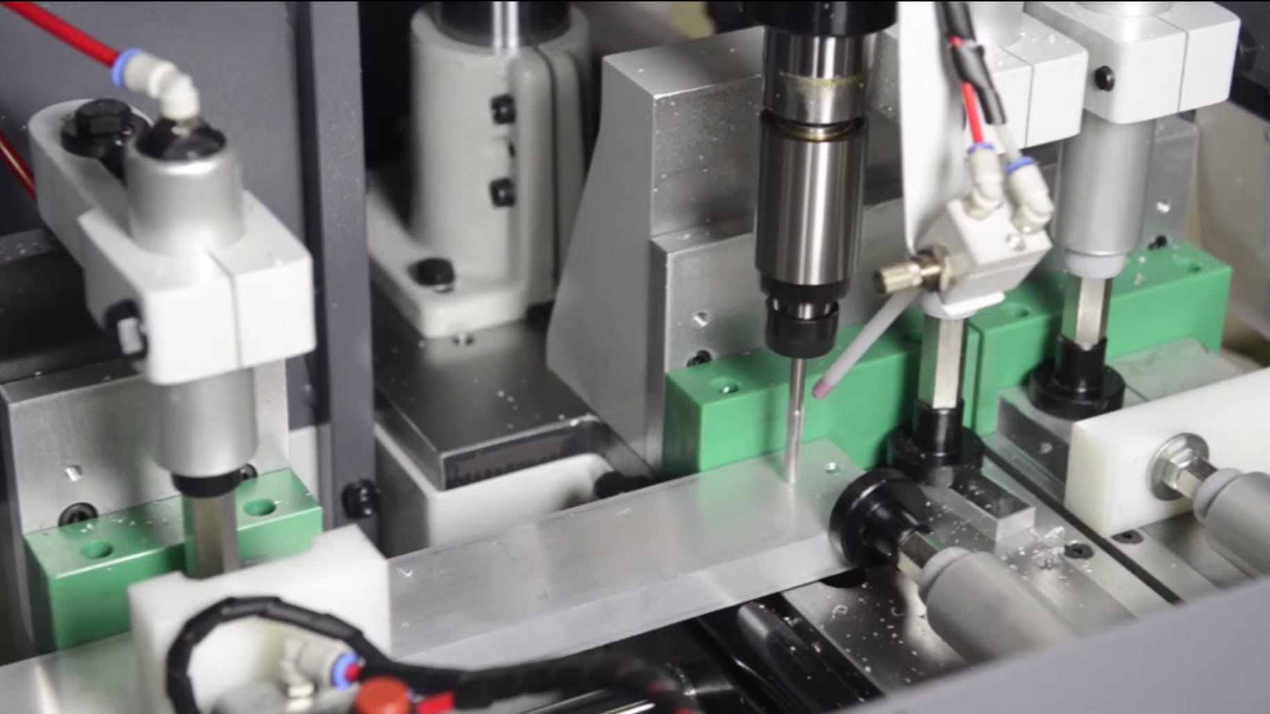 Automatic cold saw with 90° production sawing of aluminium, copper, brass, plastic extrusions and solids. Widely used in a multitude of industries including; aerospace, aviation, engineering, window and door production, contract cutting, metal stockholders, electronics for heat sink production, lighting, display and exhibition, ventilation and air conditioning, automotive, and many more. The CN servo drive ball screw feeder offers highly accurate and flexible production, and can be configured during production to have vertical and horizontal drilling/punching heads with fixed Y axis position or CN servo Y axis positioning giving a very productive and flexible manufacturing machine.