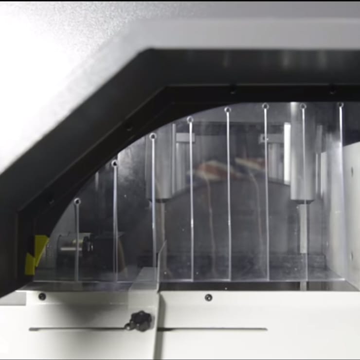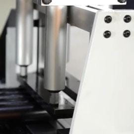 90° production sawing of aluminium, copper, brass, plastic extrusions and solids. Widely used in a multitude of industries including, aerospace and aviation, engineering, window and door production, contract cutting, metal stockholders, electronics for heat sink production, lighting, display and exhibition, ventilation and air conditioning, automotive, and many more. The CN servo drive ball screw feeder offers highly accurate and flexible production, and can be configured during production to have vertical and horizontal drilling/punching heads with fixed Y axis position or CN servo Y axis positioning giving a very productive and flexible manufacturing machine.