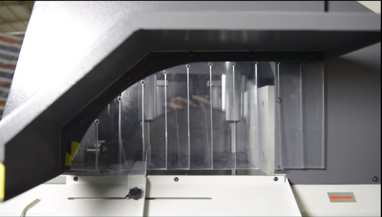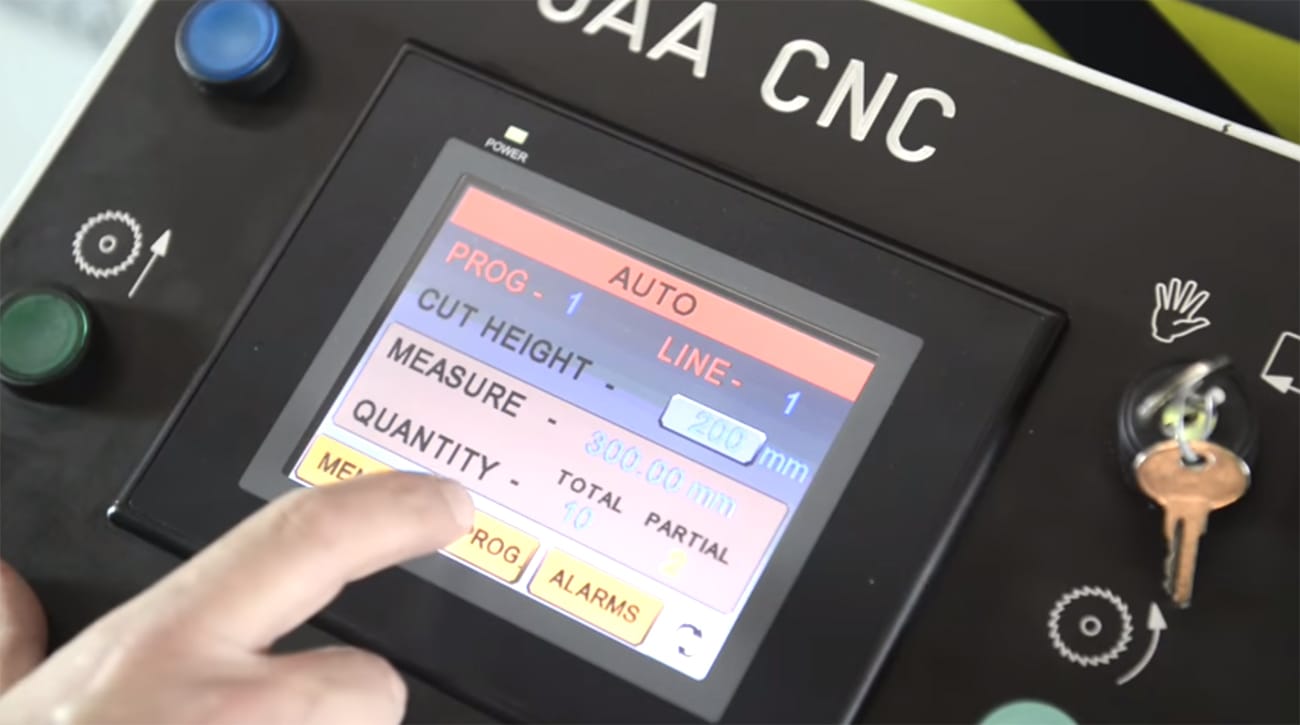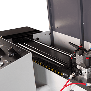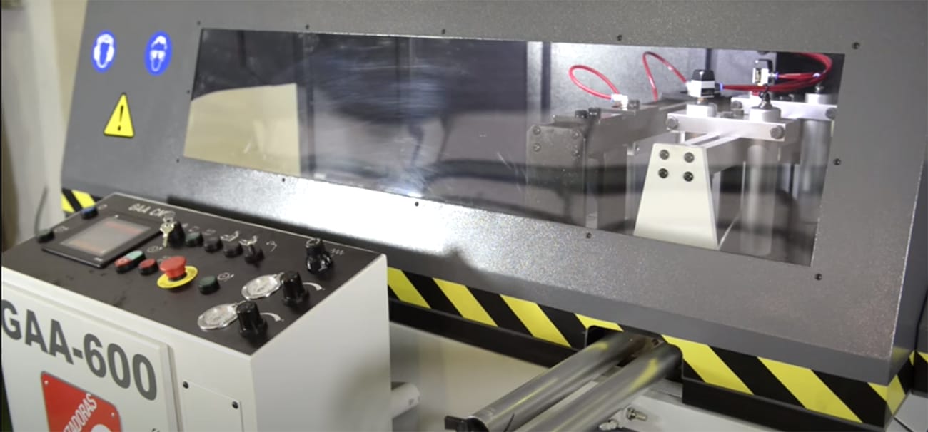 90° production sawing of aluminium, copper, brass, plastic extrusions and solids.
