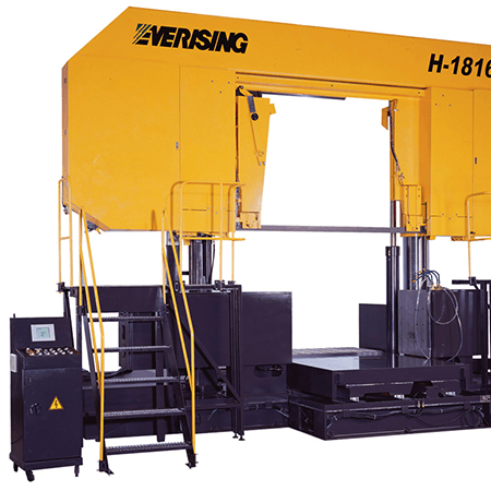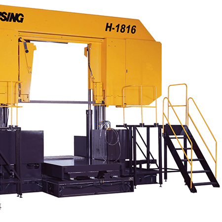 Semi Automatic production band saw ideally suited for processing of large solid materials including heavy tubes and sections.