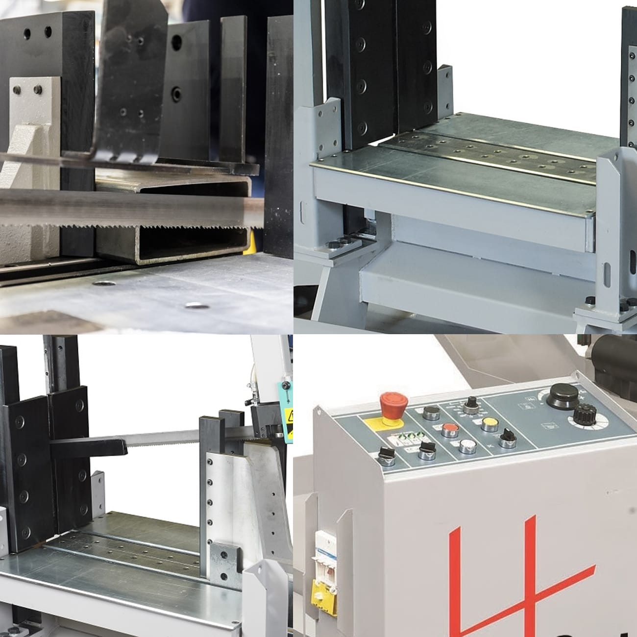 Semi-automatic, hydraulically driven twin column bandsaw for straight cut production work. This saw is built specifically for cutting profiles, pipes, beams and solids and is highly recommended for square section and flat plate as the inclined sawblade feature offers the line of least resistance on these materials. The bandsaw delivers faster cutting times, increased blade life and scope of use for each tooth pitch, with less stress on the machine components.