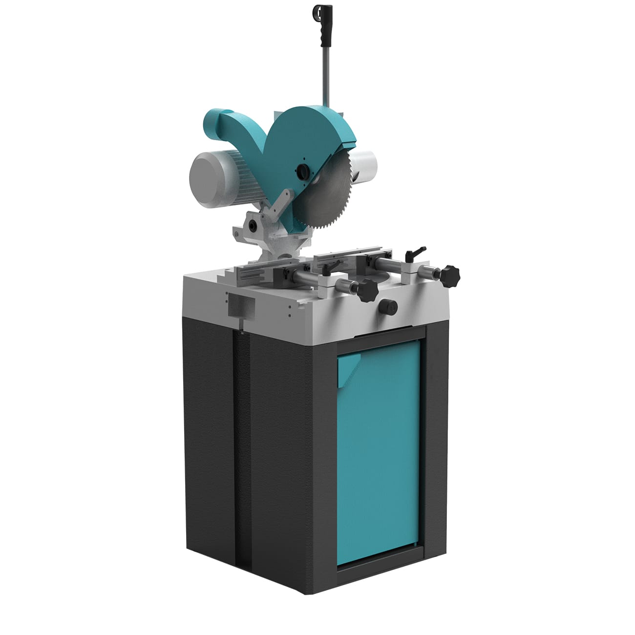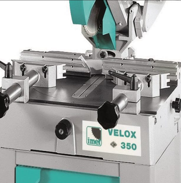 VELOX 350 is dedicated to cutting profiles and solids in anodized aluminium and light alloys with maximum precision and cutting finish. In addition to the standard horizontal inclination from 45 ° left to 45 ° right, Velox machines also have a vertical head tilt of up to 45 ° and is equipped with automatic an automatic stop system at 0 °, 15°, 15°, 30 ° and 45 ° both to the right and to the left.