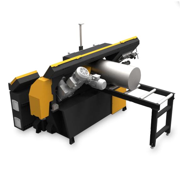 Industrial Roller feed automatic bandsaw for production cutting of solid and sectional metal material. Featuring servo drive with PLC control offering 99 programs for cutting data. This is a lower cost option to the very popular NC shuttle vice design automatics.