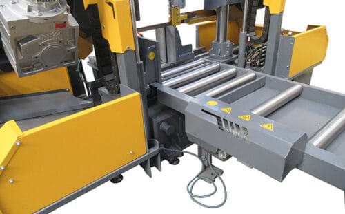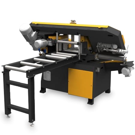 Semi automatic twin column horizontal band saw for general production cutting of all types of steel and non ferrous metals. The heavy construction makes this saw ideal for tough solid materials and demanding production situations where proven performance and reliability are a major consideration.
