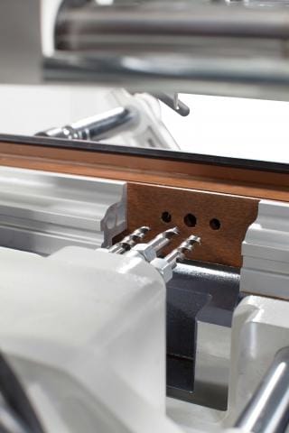 Copy router machine for PVC with triple drilling unit – and 2 heads for drain slot prep and general lock, hinge and letterbox cut-outs. The Galaxy range also comes with the ability to open various channels independently of the copy assembly with profile gauges, and to open water discharge channels with various angles and sizes.