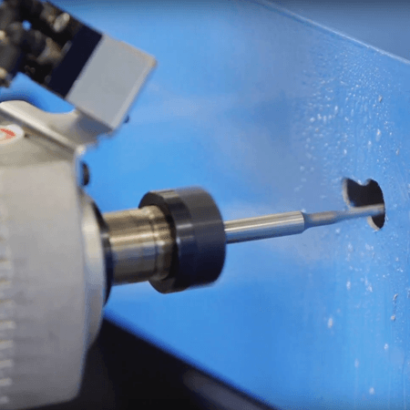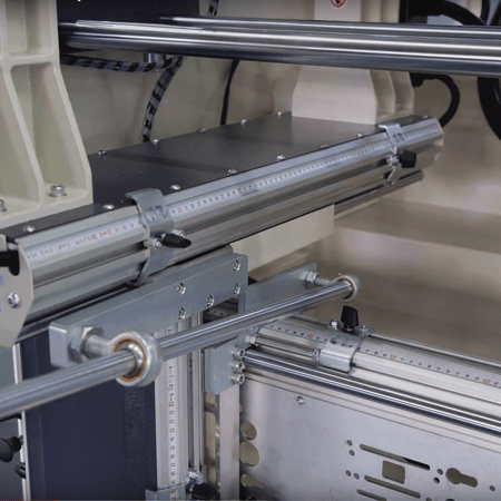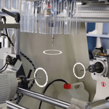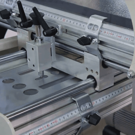Copy router machine with triple grip slot drilling and water discharge, used for cutting appropriate slots on aluminium and plastic profiles for mounting locks, grips, hinges, latches and opening channels.