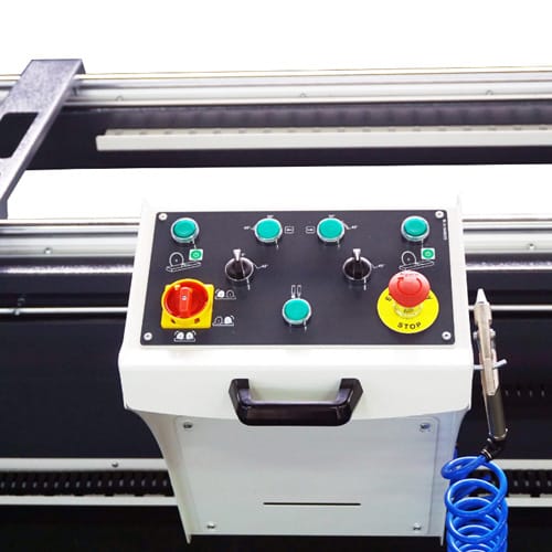 450mm CN double mitre saw with servo positioning of the moving head for precise results. Touch screen HMI for inputting of the cutting data. The Gemini IV SA has the ability to automatically cut longer profiles (eg 4m machine can cut 7m) and features pneumatic tilting of the cutting heads for mitre cuts.