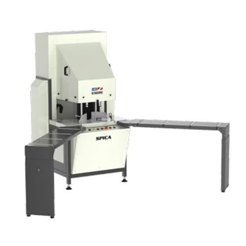 aluminium and plastic profiles. Optional equipment is required to produce the 90 degree end notch. These V notch saws take 500mm saw blades and can be used as a double mitre saw with added length measuring unit.
