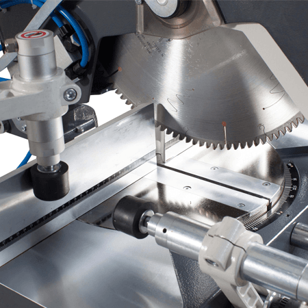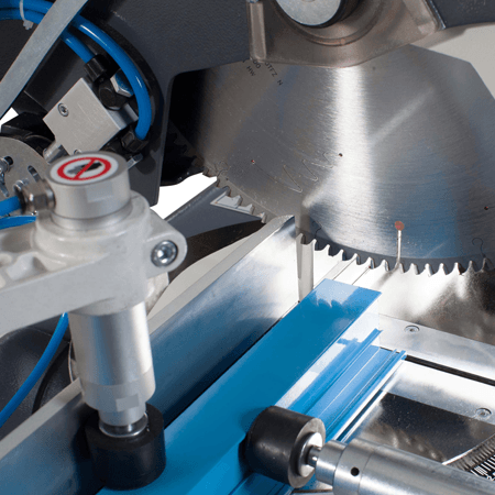The Vega II is a 400 mm portable cutting machine, used for the cutting process of aluminium, plastic and wooden extrusion profiles.