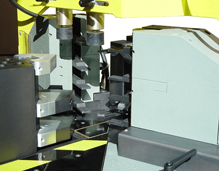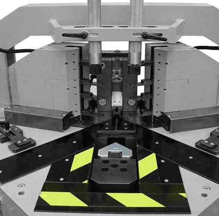 Precise joining of aluminium and steel profiles over internal cleats. Generally used in the production of aluminium windows & doors, internal partitioning, automotive and railway stock glazing, marine glazing, sign making and lighting products.