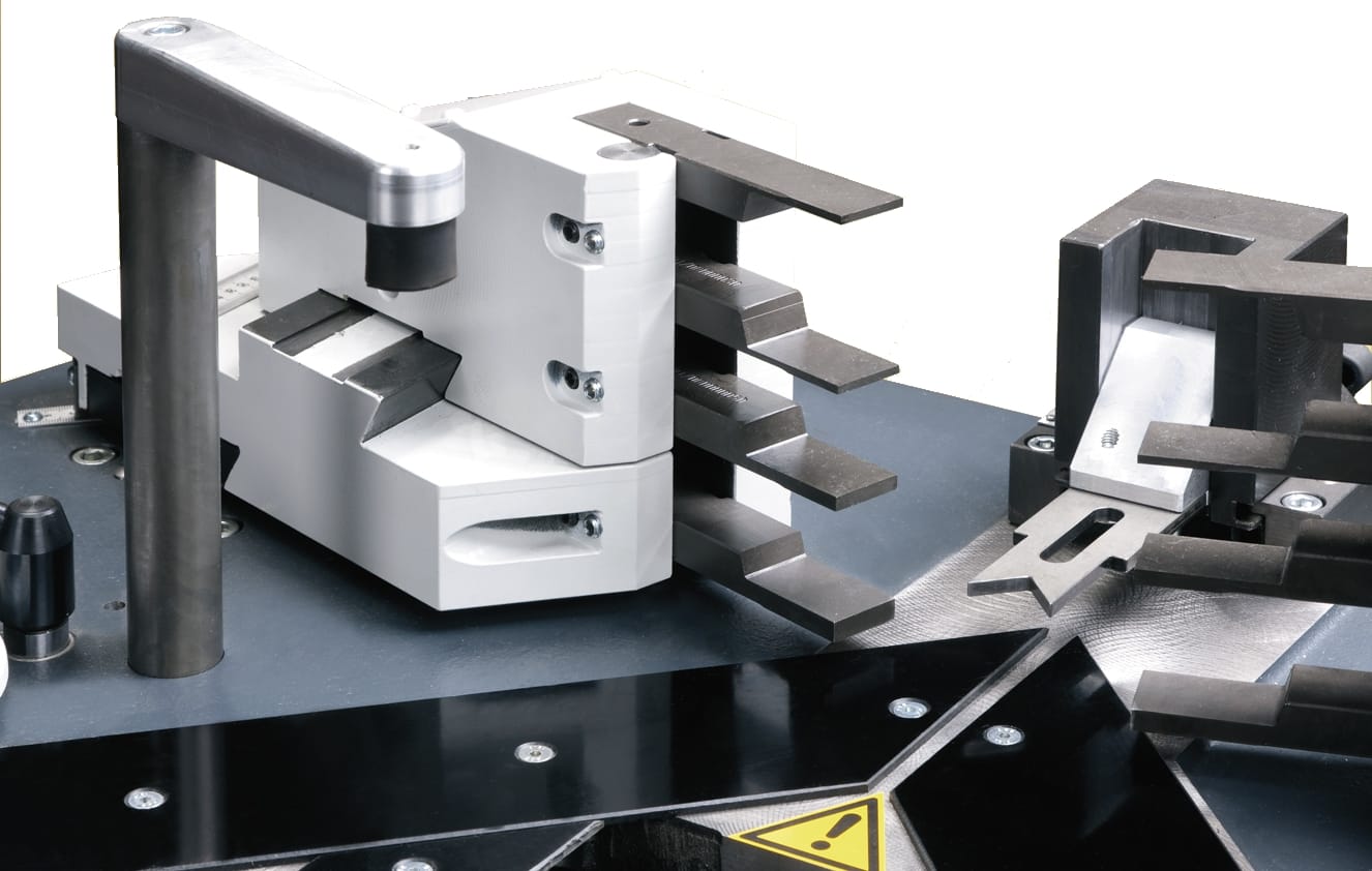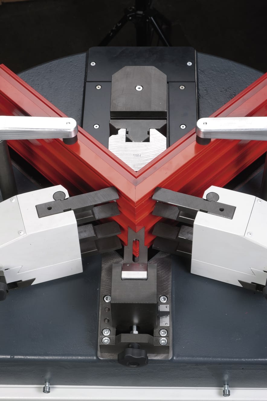 Precise joining of aluminium and steel profiles over internal cleats. Generally used in the production of aluminium windows & doors, internal partitioning, automotive and railway stock glazing, marine glazing, sign making and lighting products.