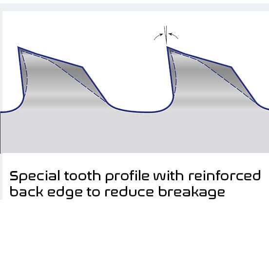 The optimized tooth cutting sharpness as well as a special limitation lead to an increased efficiency.